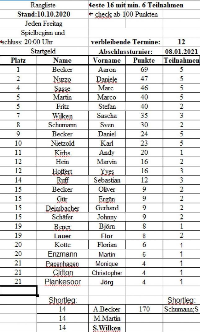 Tabellen und Ranglisten